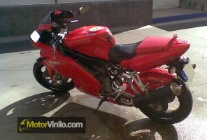 David, nos envió fotografías del resultado de haber puesto el vinilo fibra de carbono en el escape de su Ducati 750. Tras muchos kilómetros el vinilo sigue luciendo como el primer día: